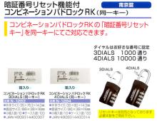 コンビネーションパドロックRKの「暗証番号リセットキー」を同一キーにてご対応できます。