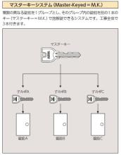 新規でマスター,逆マスター装置がつけたい場合でも同じ金額で注文が可能です。(新規マスターキーシステムの場合、マスターキー3本付き)
