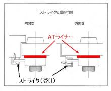 ATライナーは室内側ロックケース下に引いてストライク(受け)の位置を内側にずらして取り付けなければいけない場合に使用します。