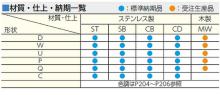 ・色をST(ステンレスヘヤーライン)・SB(ステンレスバフ)・CB(ステンレスセラミックブロンズ)・CD(ステンレスセラミックダークグレイ)・MW(木)からご選択いただけます。