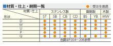 ・色をST(ステンレスヘヤーライン)・SB(ステンレスバフ)・CB(ステンレスセラミックブロンズ)・CD(ステンレスセラミックダークグレイ)・BS(黄銅ヘヤーライン)・YB(黄銅ハブ)・MW(木)からご選択いただけます。(下記参照)
