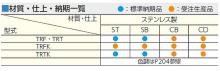 商品の材質・仕上・納期については下記の表をご確認ください。