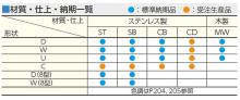 商品の材質・仕上については下記の表をご確認ください。