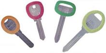 鍵のつまみ部分へ簡単に付けられます。自宅の鍵を家族で色分け区別したり、アパート等の部屋鍵を色別で管理したり、社用の鍵を色で区別したりと用途は多彩です。鍵を回すとき指にフィットし動作も楽に行えます。