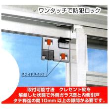 万一侵入者がガラスを割って、ロックを解除しようとしてもスライドスイッチを解除しないと閉じられない安心機構。