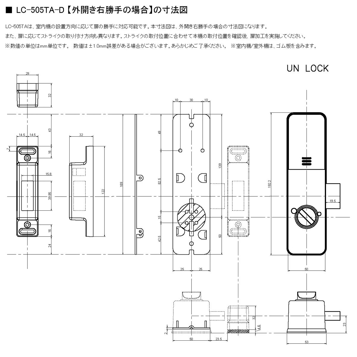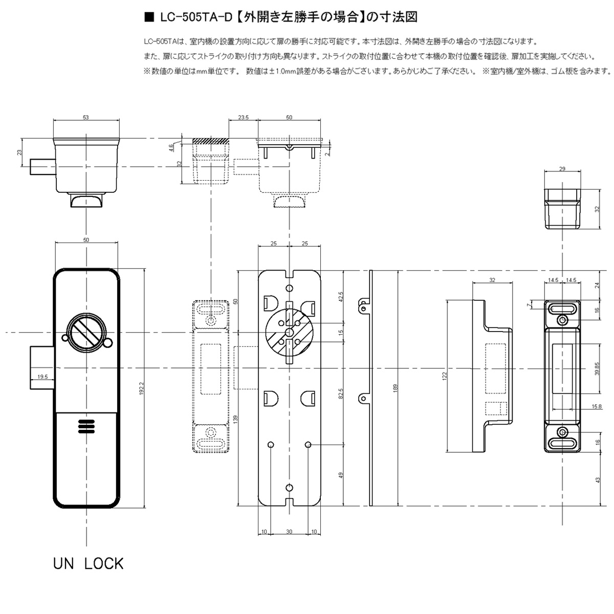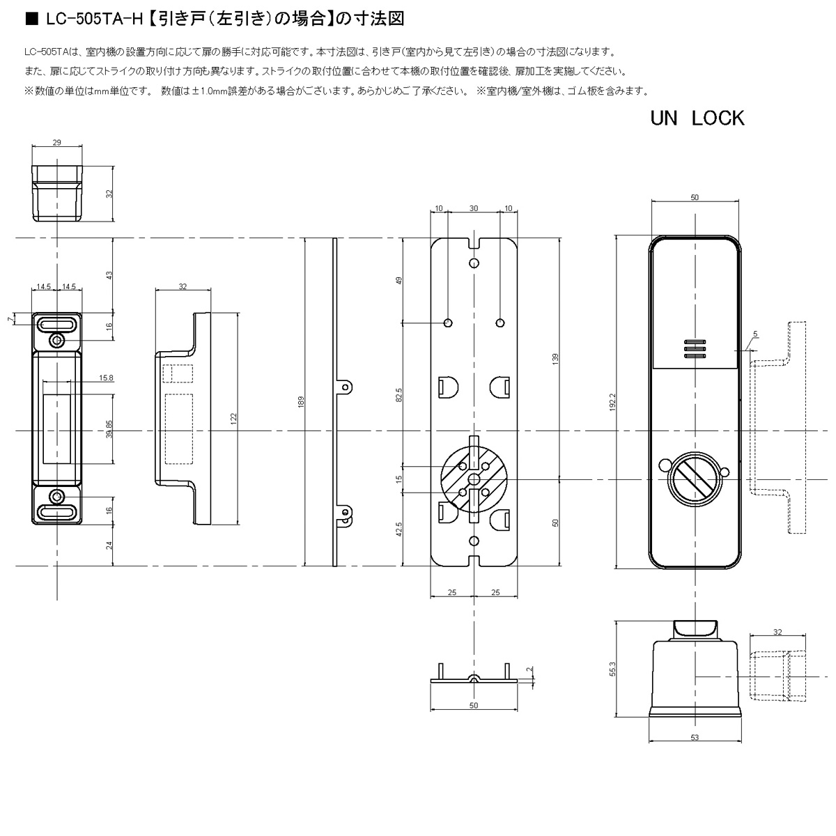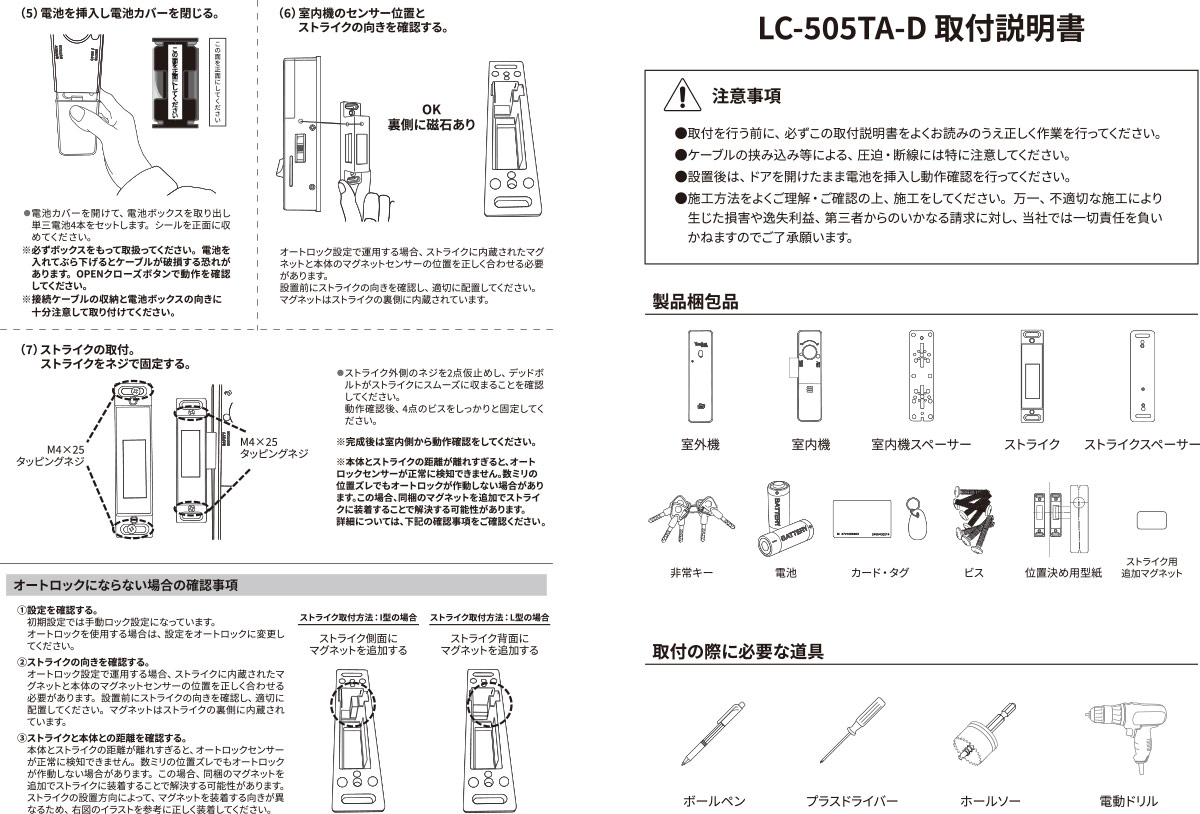 LOCKMAN,ロックマン LC-505TA-H / LC-505TA-D 取付説明書 / 取付展開図