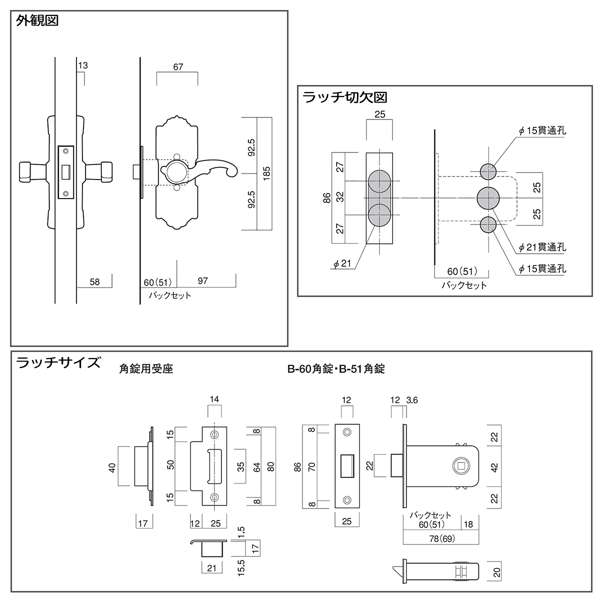 ※バックセットとは、扉の端から錠前センターまでのサイズを言います。