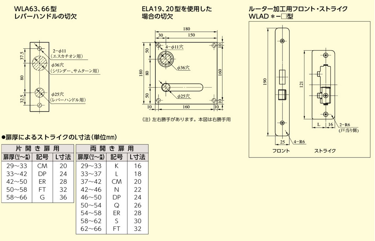 ・ストライクは片開き扉用が付属になります。両開き用をご希望のお客様は別途お問い合わせください。