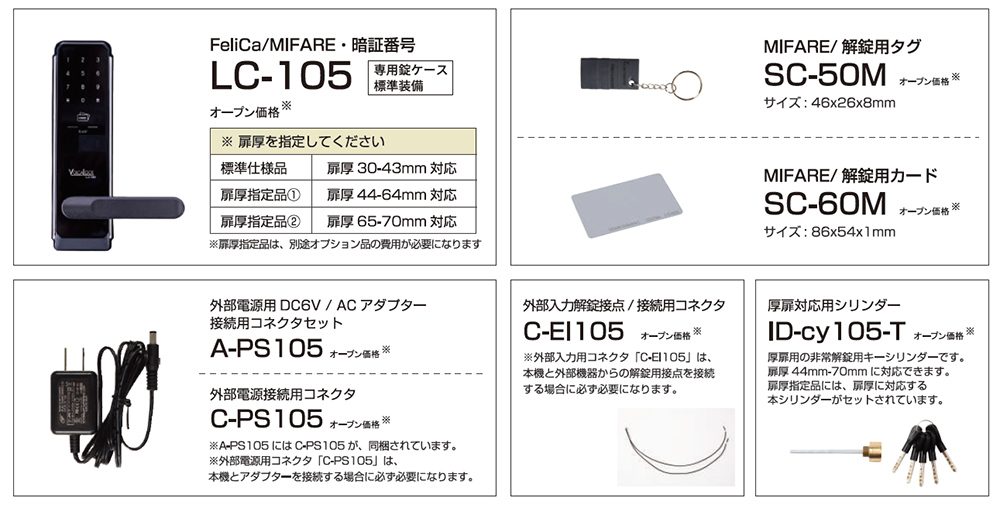 LOCKMAN, ロックマン デジタルドアロック LC-105, LC-105-R 各種オプション