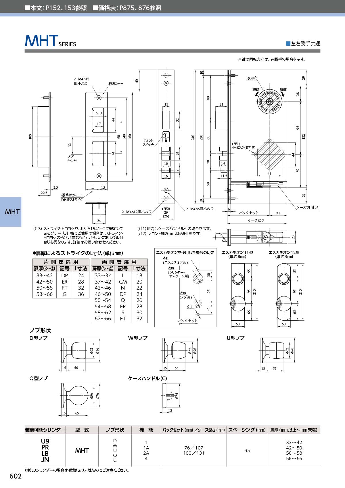 MIWA、美和ロック MHTシリーズ 高級ケースロック(自動施錠タイプ)