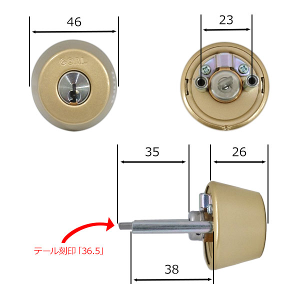 シリンダー色はゴールドになります。