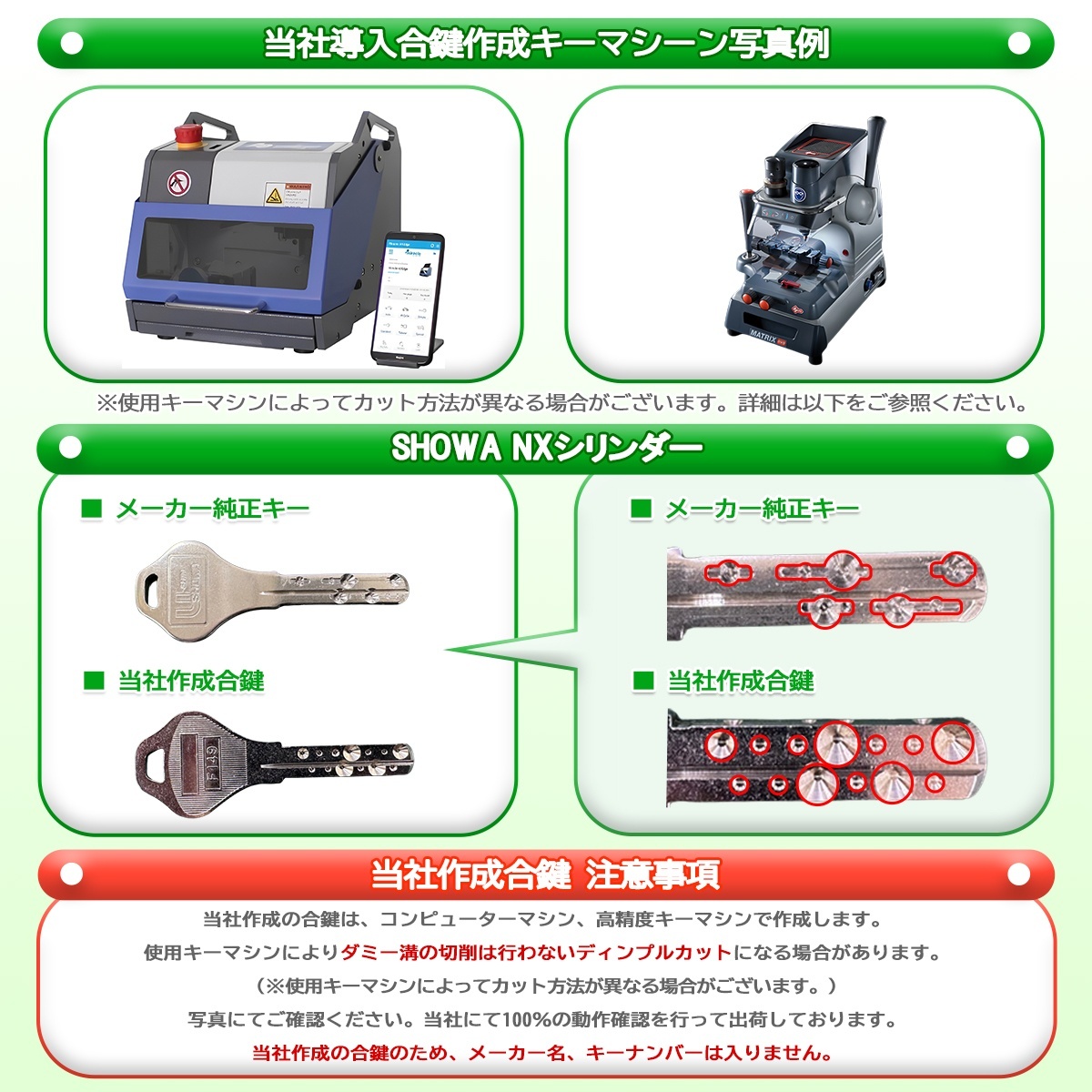 | 追加キー | オプションで選択可能 ※当社作成合鍵注意事項を4枚目の画像でご確認ください。 |
