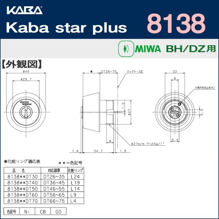 ※8137/8138はニッケル(NI)、ゴールド(GO)、ブロンズ(CB)の3色