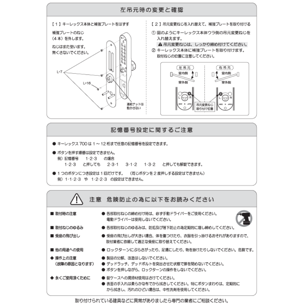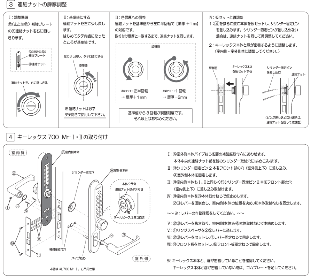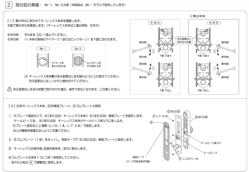 扉の加工は不要で、レバーハンドル、錠、受座は既存のものを再使用可能です。