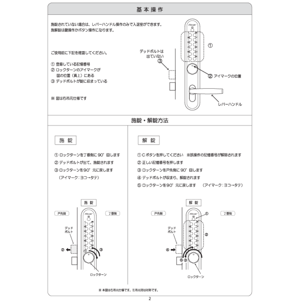 鍵で閉めるとボタンによる解錠操作ができなくなり、防犯性がさらに高まります。