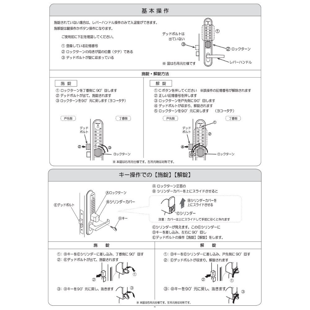 鍵で閉めるとボタンによる解錠操作ができなくなり、防犯性がさらに高まります。