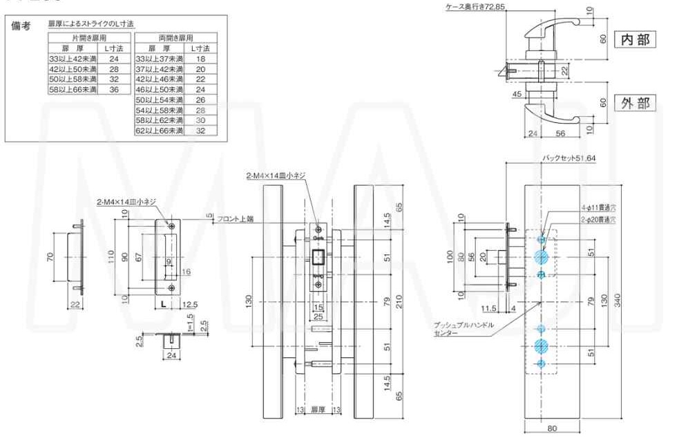 ■外側のプレート取り付けビスを隠し、ハンドル取り付けは内部側からのみ。取り外しなどのいたずら防止に効果的です。