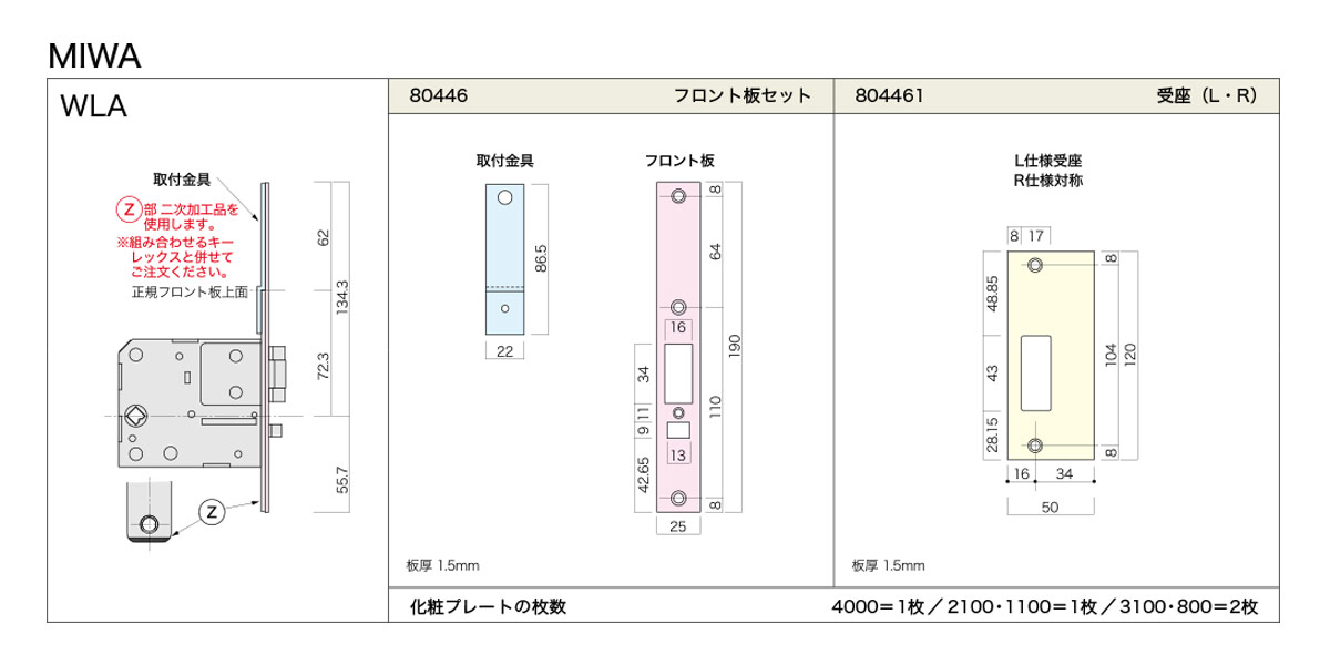 長沢,NAGASAWA【鍵の卸売りセンター】フロント,ストライク取付部品