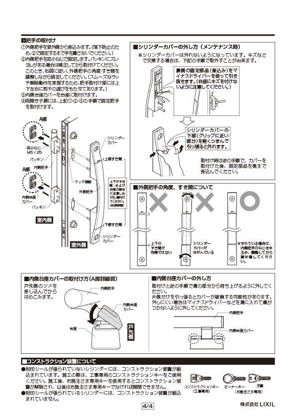 ドアのハンドルによってはシリンダー交換ができません。下記画像にてシリンダー交換可能なハンドルのタイプであるか必ずご確認をお願いいたします。