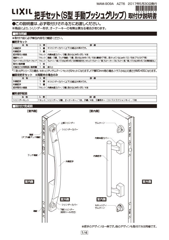 | リシェントII扉 S型ハンドル手動用 | 上部:QDN608,下部:QDK668 |