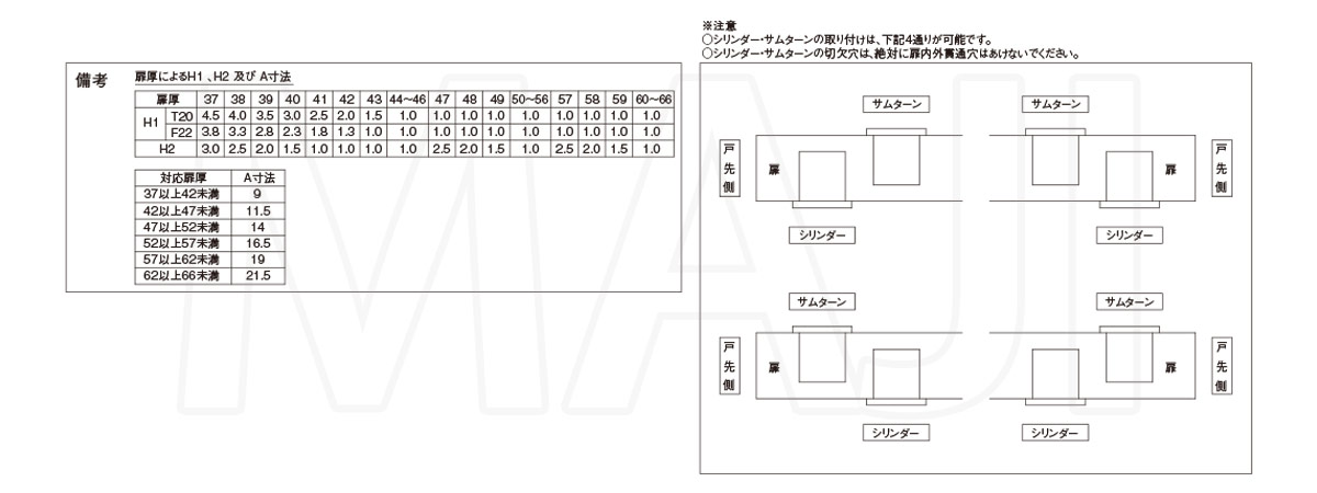 対応扉厚:37mm以上〜42mm未満