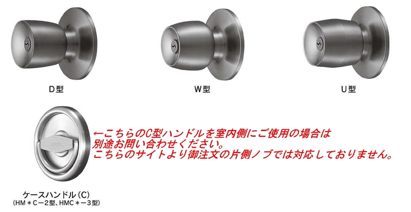 *注意 室内側ノブをC型ハンドルをご使用の場合、こちらのサイトの商品では対応していません。別途お問い合わせください。C型ハンドルは下のノブ形状でご確認できます。