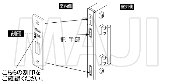 | マデラード扉 | 上部:MIWA QDD835,下部:MIWA QDC19(把手部 MIWA QDC151) |