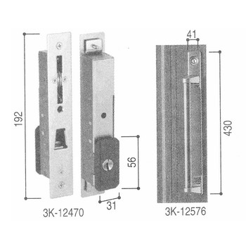 上記写真の召し合わせ部錠(3K-12470)はシリンダー側の錠のみになります。写真はシリンダー側の錠を内側外側から見た写真になります。
