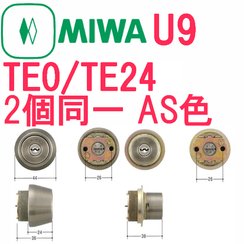 MCY-452 MIWA,美和ロック U9 TE0/TE24 AS色 2個同一シリンダー [MIWA-U9TE0TE24ASx2]
