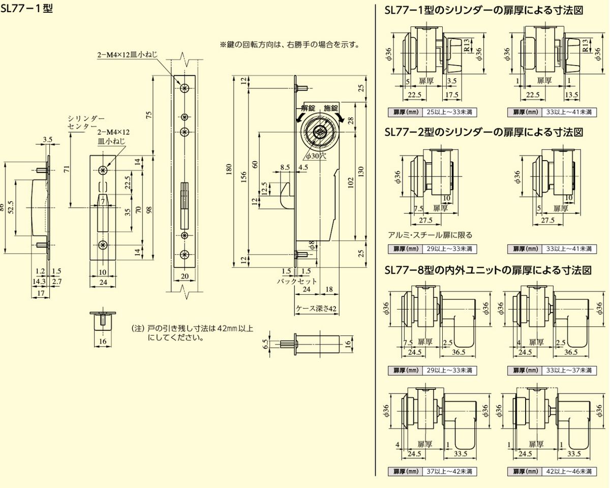 ・ルーター加工用フロント・ストライク付 SL77D-1をご希望のお客様は別途お問い合わせ下さい。