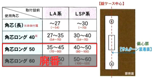 ※角芯ロング 40は各種扉厚70キット梱包されているものと同等品です。