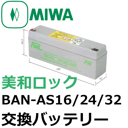MIWA,美和ロック BAN-AS16・BAN-AS24・BAN-AS32 交換バッテリー